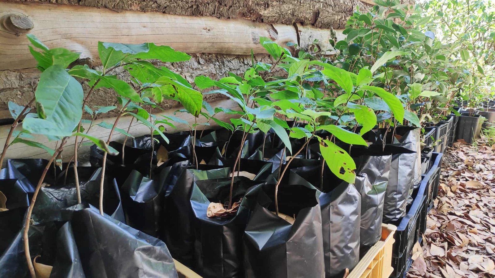 Les asiminiers que je vend sont semés en godets, puis ils passent une année supplémentaire dans des sacs de cultures profonds (+ de 30cm) dans lesquels je les vends.