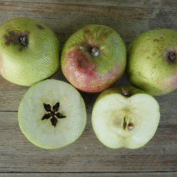 Variété ancienne, on la retrouve dans les hautes Alpes et sur les coteaux de Provence. C’est une grosse pomme un peu allongé et parfois côtelée. La peau est jaune dorée, la chair est de couleur crème, tendre, sucrée, juteuse et parfumée.